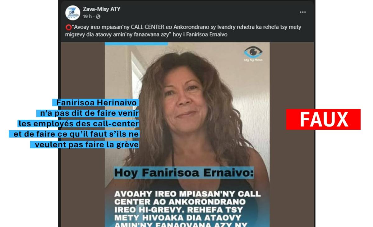 De fausses paroles impliquant la politicienne Fanirisoa Erinaivo