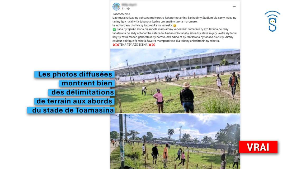 Verdict : Vrai – Les photos diffusées montrent bien des délimitations de terrain aux abords du stade de Toamasina.
