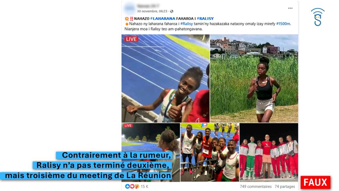 Verdict : Faux. Contrairement à la rumeur, Ralisy n’a pas terminé deuxième, mais troisième du meeting de La Réunion.