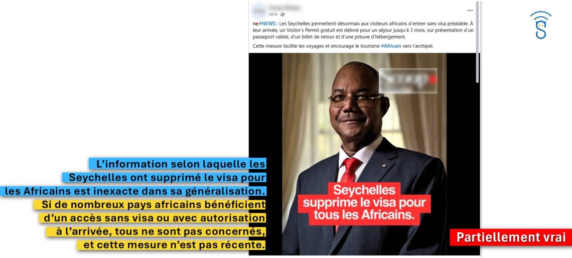 Verdict : Partiellement vraie. L’information selon laquelle les Seychelles ont supprimé le visa pour les Africains est inexacte dans sa généralisation. Si de nombreux pays africains bénéficient d’un accès sans visa ou avec autorisation à l’arrivée, tous ne sont pas concernés, et cette mesure n’est pas récente.